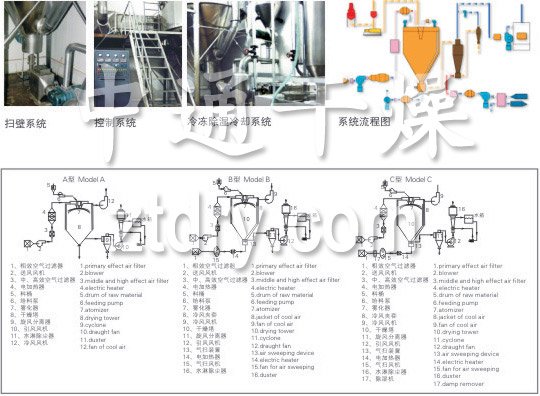 中药浸膏高速离心喷雾装置是离心式喷雾干燥技术在特定物料干燥中的应用 ,也是利用高速离心式雾化器使物料分散成雾状,与热空气所充分接触 ,完成瞬间干燥,形成粉状成品的干燥装置。是专门用来解决,中药浸膏和植物撮液的喷雾干燥机 ,它解决了物料在原LPG高速喷雾干燥机在中药浸膏干燥中出现的以下情况: