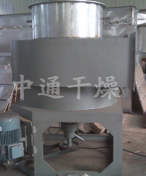 热空气由入口管以适宜的喷动速度从干燥机底部进入搅拌粉碎干燥室,对物料产生强烈的剪切、吹浮、旋转作用,于是物料受到离心、剪切、碰撞、摩擦而被除数微粒化,强化了传质传热。在干燥机底部,较大较湿的颗粒团在搅拌器的作用下被机械破碎,湿含量较低、颗粒度较小的颗粒被旋转气流夹带上升,在上升过程中进一步干燥。由于气固两相作旋转流动,固相惯性大于气相,固气两相间的相对速度较大,强化两相间的传质传热,所以该机生产强度高。
