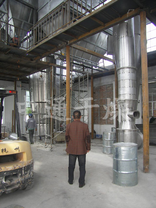 在树脂产品中有部分产品含水率高,终水份要求低,由于在干燥过程中能够承受的温度在45℃以下,采用常规干燥设备很难一次性达到要求。我公司针对该物料特性作出专门设计,一级采用气流干燥机先将物料内的水份降低,然后进入二级沸腾干燥机,两套设备之间的物料采用负压气流输送,减少了人员工作量的同时保证物料浪费小,且工作环境整洁。