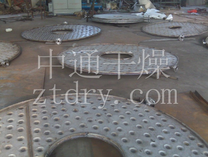 日前,由山东某化工有限公司订购的LPG2500/10盘式连续干燥机正式下单生产。该设备用于硝酸钡生产线中的干燥环节,与前道卧式离心机经皮带输送组成连续生产线,设计产能1.5T/h。 本设备采用蒸汽加热,干燥温度130度,可将初水份10%的湿物料烘干至0.4%以下。在技术要点方面:采用了热量补偿装置;并设计独立的布料盘;上部第二、三层设置碾压辊;底盘设计冷却夹套;带打碎杆螺旋加料器;螺旋搅拢出料,不增加主机高度的同时将出料高度提高到1.5米;进出风温度、电机电器集中显示、控制技术等等。