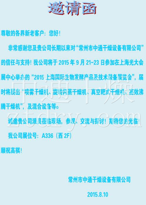 2015上海发酵产品与技术装备展邀请函Datetime:2015-08-10 14:35:33 Hits:1245
