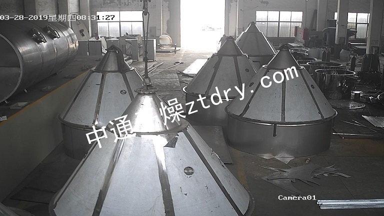 2019年的春季对于中通干燥是繁忙的一季,据统计目前我公司生产车间在制的设备有MC-480脉冲布袋除尘器二台、石墨烯专用喷雾干燥机六台、热风循环烘箱五台、内部喷涂PFA三合一干燥机一台、真空式脉冲布袋器一台、DW2×18带式干燥机二台、沸腾床干燥机一台、20立方螺带混合机三台、ZLG8.0×1.2振动流化床一台。后续仍有多台干燥设备合同即将签约或紧密磋商中。下图为一线车间繁忙象: