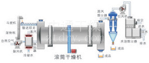 When the damp raw material is fed from one terminal, it is turned over through blades that are distributed inside the cylinder and will be distributed uniformly in the drier and contact fully with the countercurrent hot air. In this way, the process of heat conduction is increased. During the period of dry, under the effect of incine blades and hot air stream, raw material can be moved to the star section of drier and discharged from disharged form discharging valve.