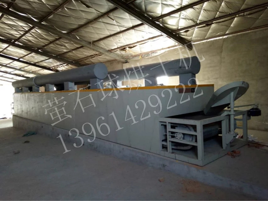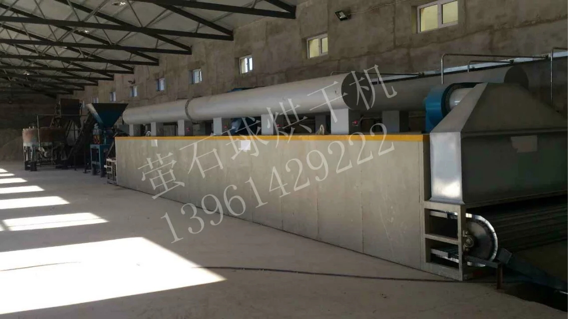 由内蒙天马订购的用于萤石球干燥机的DW1.8-14带式干燥机目前已安装调试完成。该设备采用间接式燃煤热风炉加热,设计产量2.5-3T/H。经过我公司售后服务人员辛苦工作,目前已正式调试完成,达到预期设计,正式投入生产。下图为现场安装调试照片: