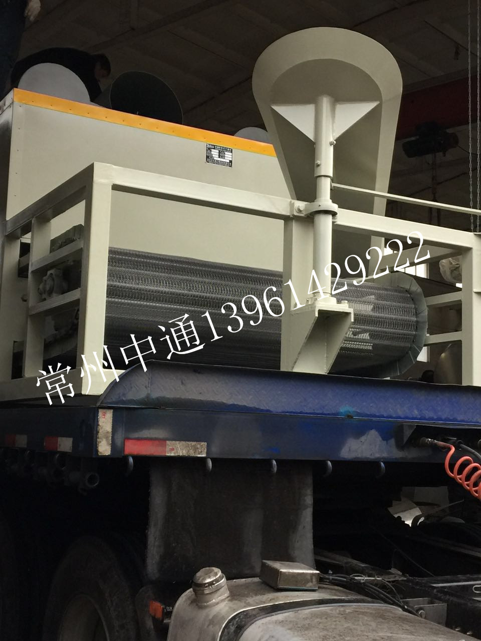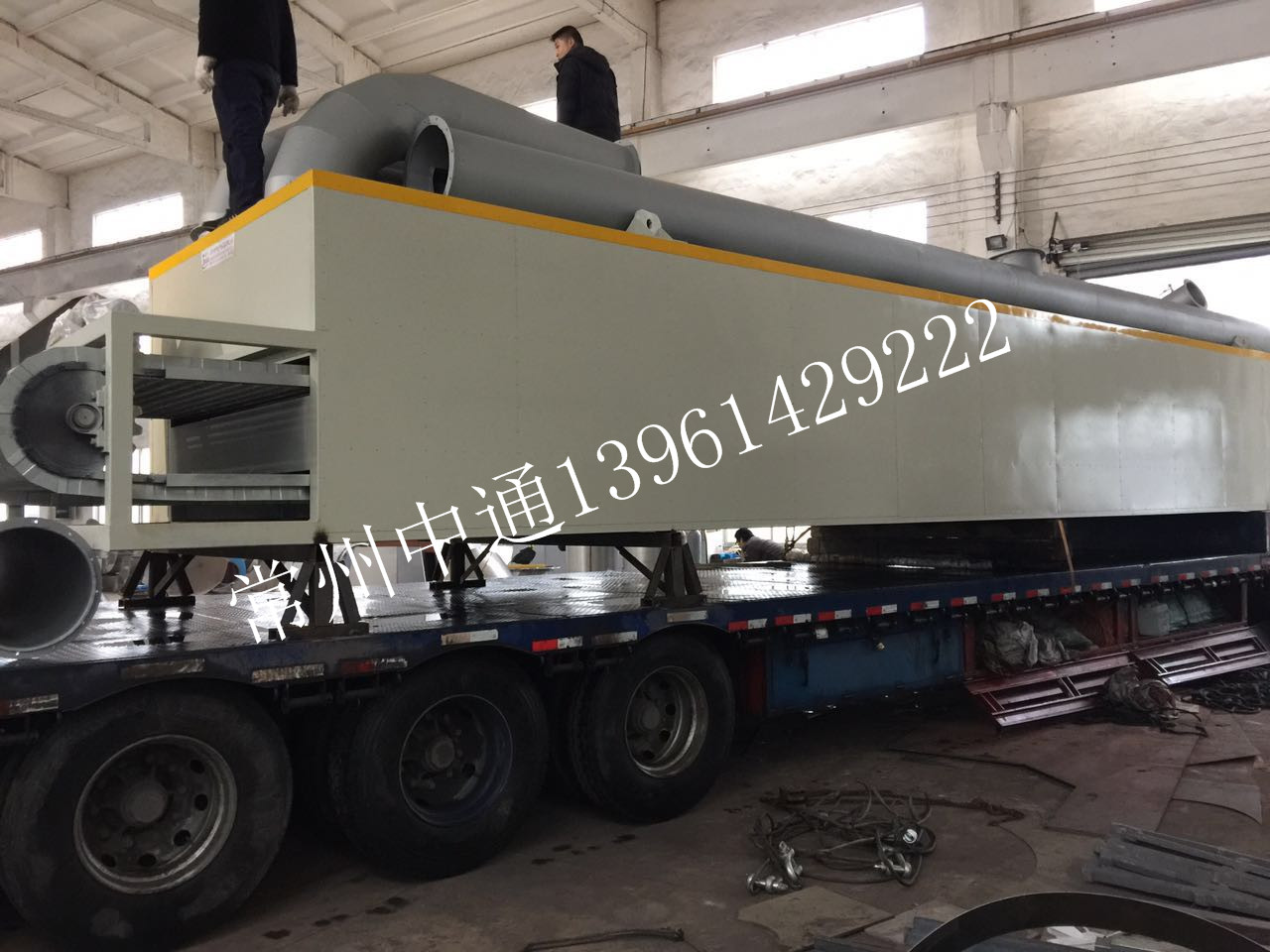 由辽宁辽阳**金属添加剂厂订购的冶金辅料专用带式干燥机经过车间近30天的辛勤工作,已制作完成。该设备采用热风炉架势,适用于各种球状、块状、条状物料的高温烘干,尤其适用于冶金辅料(萤石球、粉笔头等)的干燥。下图为装车照片: